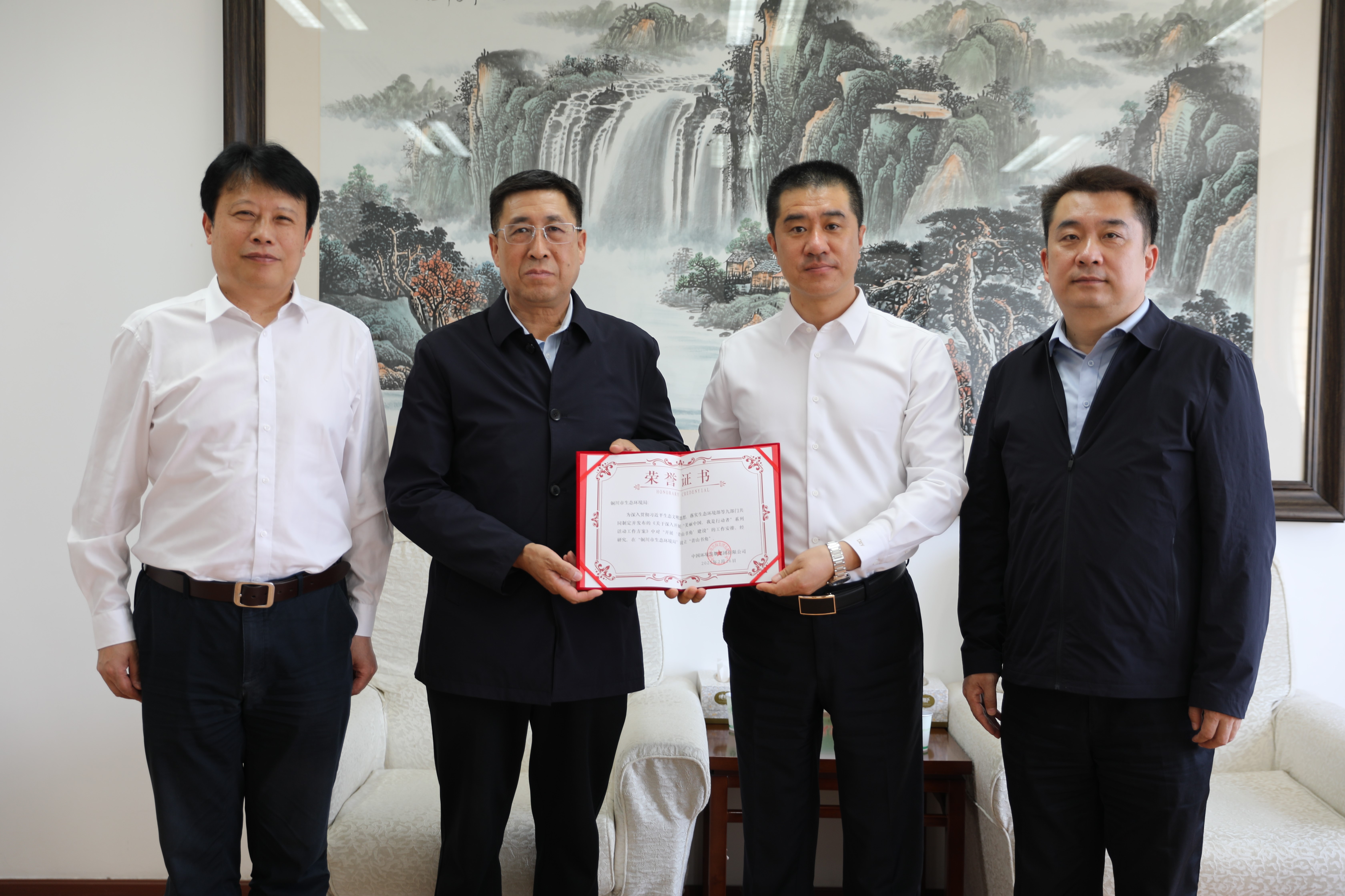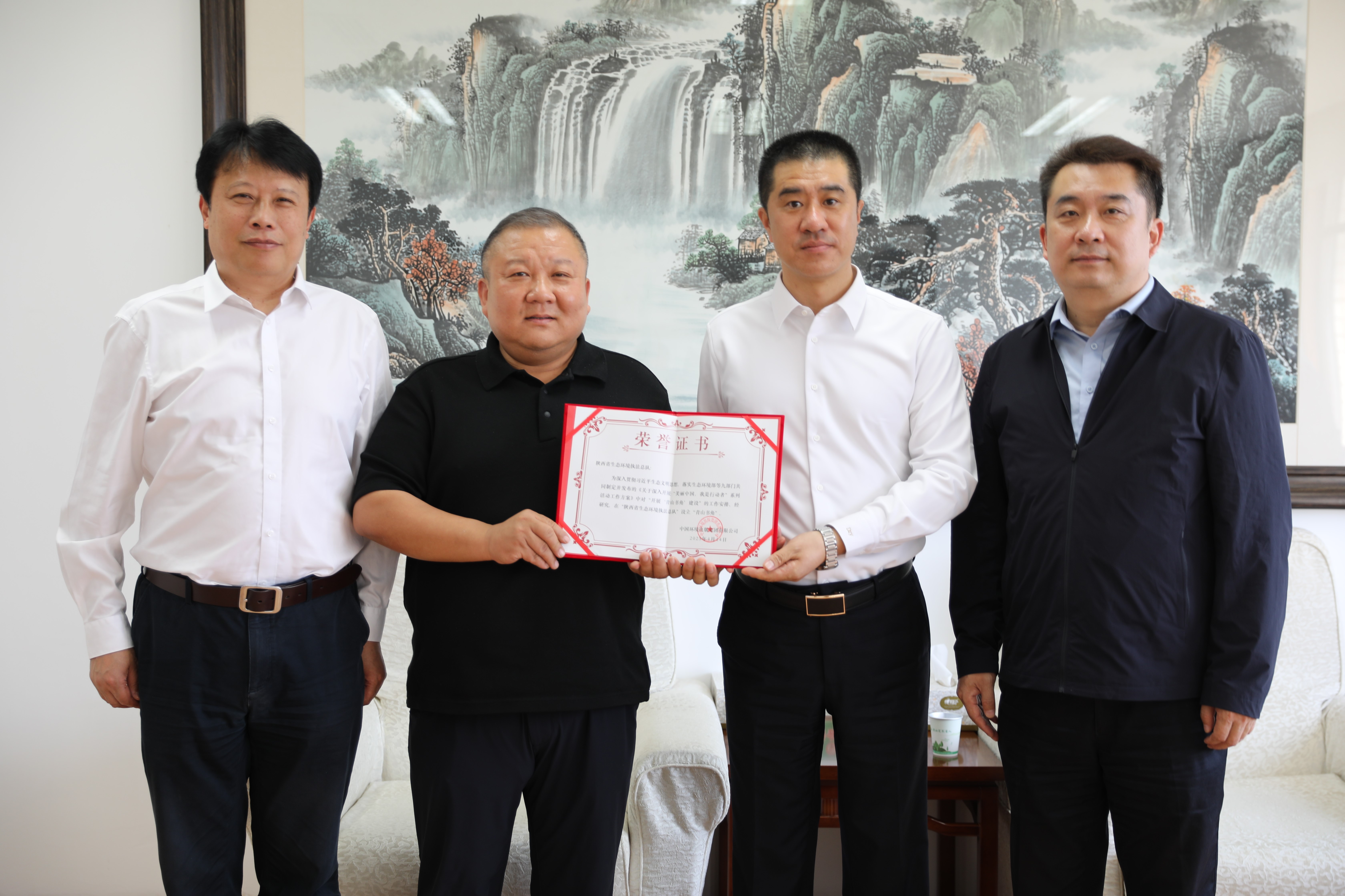 王付瑜對(duì)陜西省廳一直以來對(duì)出版集團(tuán)建設(shè)發(fā)展的關(guān)心與大力支持表示感謝,介紹了出版集團(tuán)圍繞生態(tài)環(huán)保中心開展圖書出版、期刊宣傳、版權(quán)輸出、“青山書角”建設(shè)等重點(diǎn)工作,為“青山書角”落戶陜西省生態(tài)環(huán)境執(zhí)法總隊(duì)、銅川市生態(tài)環(huán)境局、西安市生態(tài)環(huán)境局高陵分局頒發(fā)證書。張金東介紹了陜西省生態(tài)環(huán)境保護(hù)工作、生態(tài)環(huán)境宣傳教育工作開展情況、取得的成效和今后的工作重點(diǎn)、發(fā)展方向,重點(diǎn)介紹了“當(dāng)好小衛(wèi)士、守護(hù)大秦嶺”等典型案例。雙方表示,深入貫徹習(xí)近平生態(tài)文明思想、習(xí)近平文化思想,全面落實(shí)生態(tài)環(huán)境保護(hù)大會(huì)精神,進(jìn)一步高質(zhì)量做好生態(tài)環(huán)保成果傳播與宣傳教育工作是雙方共同的目標(biāo),希望通過本次交流學(xué)習(xí),共同為全面推進(jìn)美麗陜西建設(shè)盡責(zé)盡力。